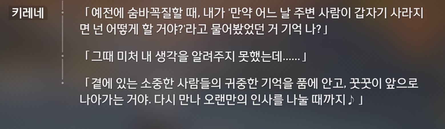 [스타레일]250828 스틱시아 (0) 2025.08.28 [스타레일]250820 황금레스토랑 끝 ㅠ,, (0) 2025.08.20 [스타레일] 250814 3.5 ‘영웅은 죽기 전에’ (1) (0) 2025.08.14 [원신] 250806 테노치즈톡 즐기기/ 나타 떠나보낼 준비 하기 (0) 2025.08.06 [원신]250803 여름휴가 틈틈이 즐기기 (0) 2025.08.04