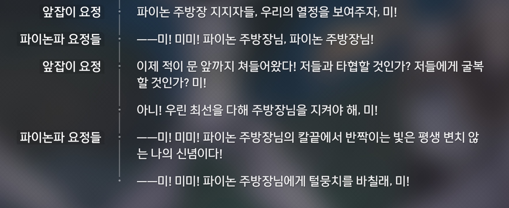 저 악마날개 말고 일러스트에 나왔던 망토 하고있었으면 캐릭터성에 더 맞았을텐데 아까움레스토랑 경영 미니게임을 하기 위해 이벤트 시작지점인 엘리사이 에데스로 오니