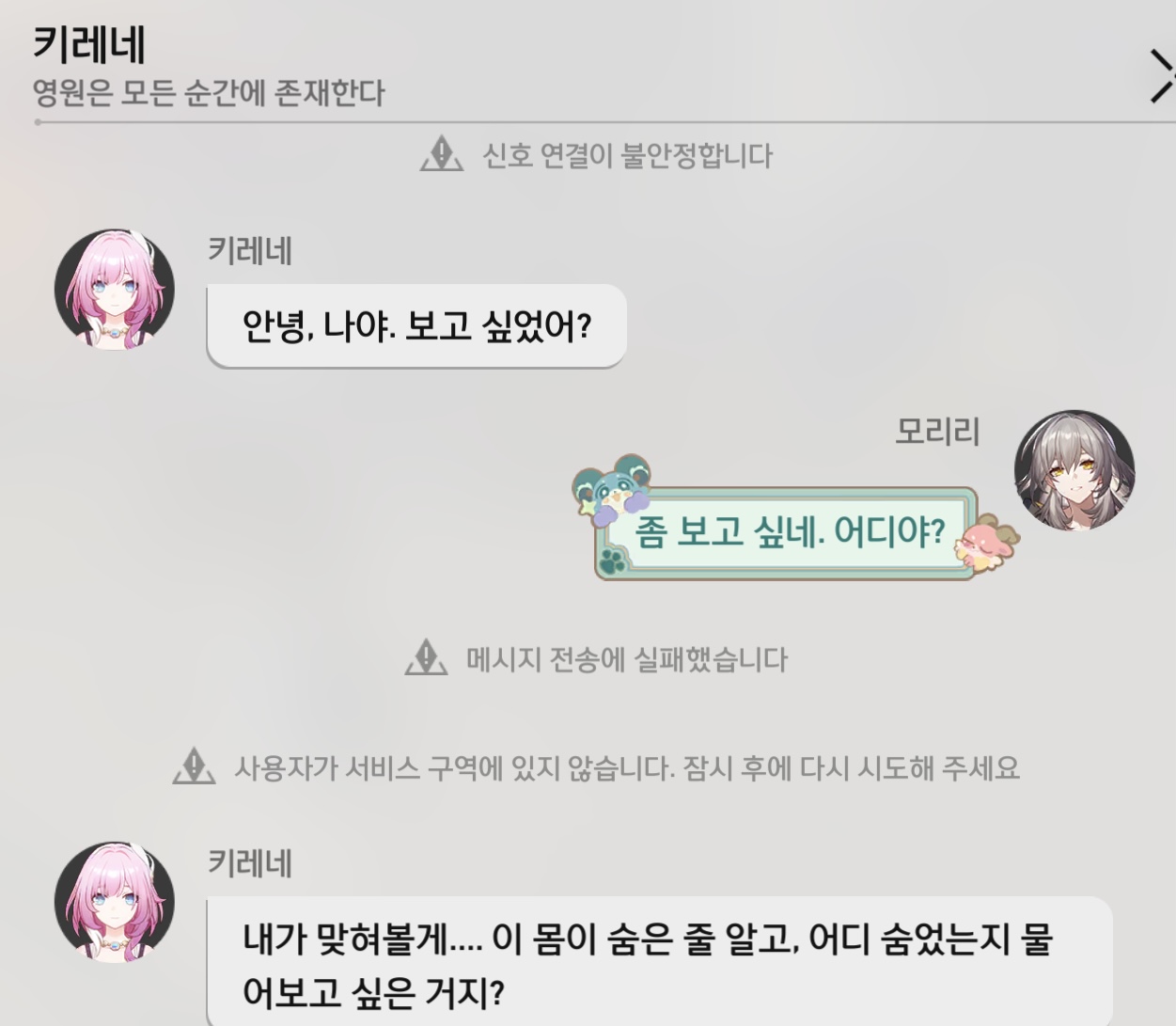키레네가 남긴 문자를 받을 수 있었다